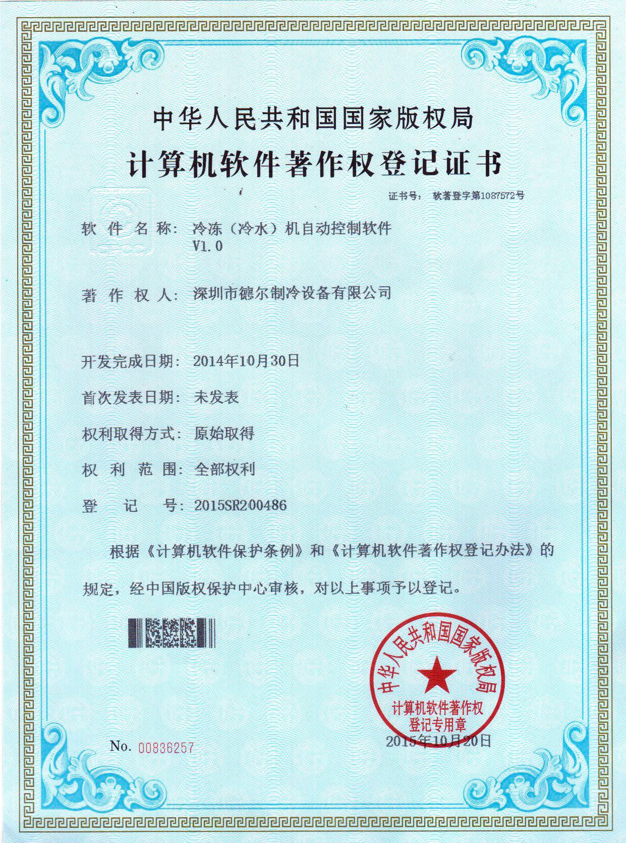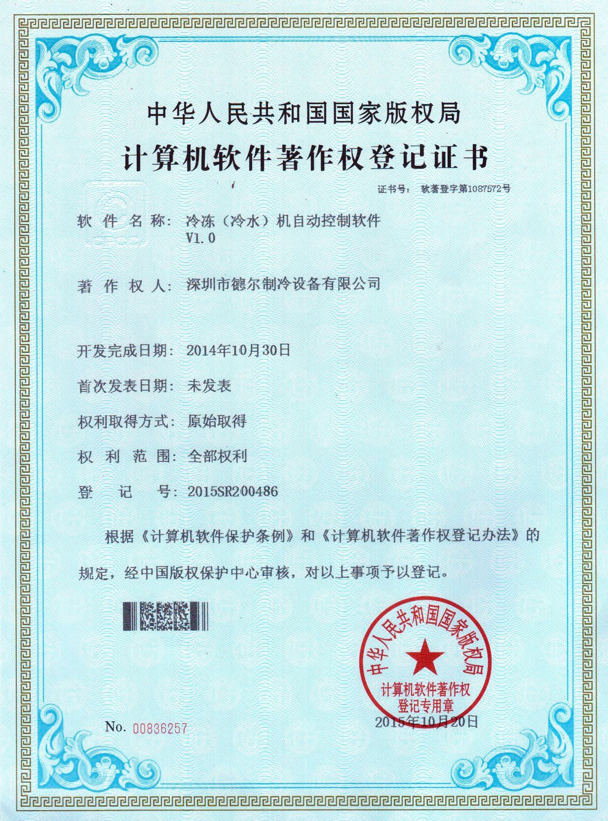 冷凍(冷水)機(jī)自動(dòng)控制系統(tǒng) 軟件著作權(quán)證書