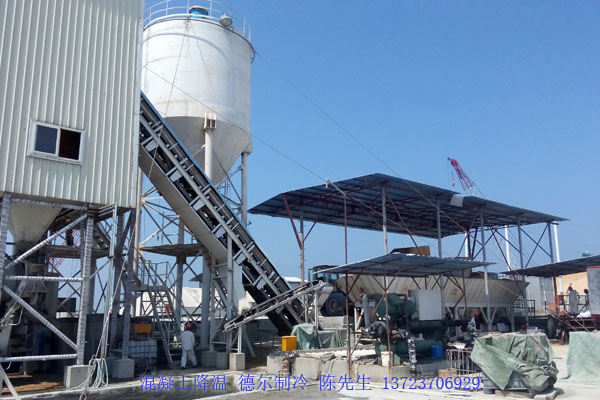 簡陋的雨棚下,我司混凝土專用冷水機(jī)發(fā)揮重要作用
