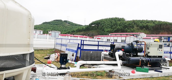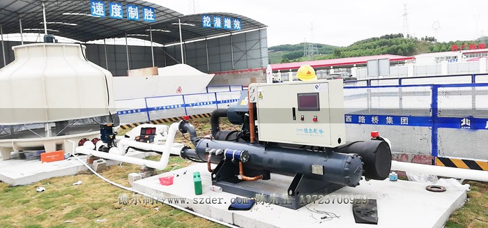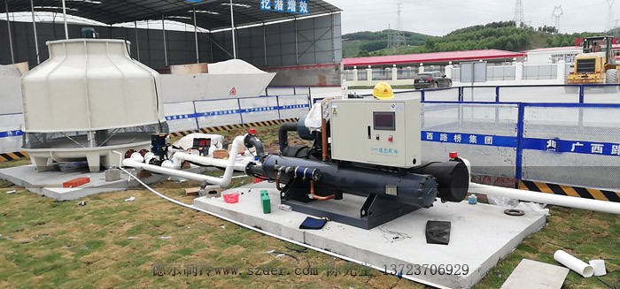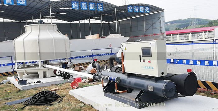 新柳南高速公路6標(biāo)段配套我司生產(chǎn)的混凝土專用冷水機(jī)安裝中