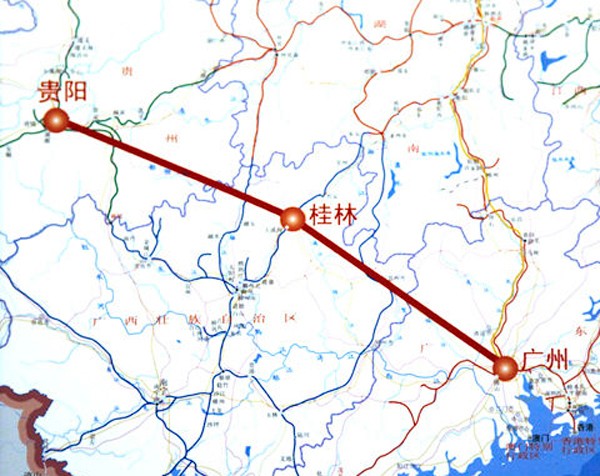 貴廣高速鐵路又稱貴廣客運(yùn)專線,線路自貴陽北站起,經(jīng)黔南州、黔東南州、廣西桂林、賀州、廣東云浮、肇慶、佛山終至廣州南站。